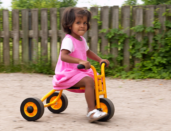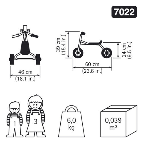 Gå-cyklen er børnenes allerførste 3-hjulede cykel. Den kommer før den mere komplicerede 3-hjulede cykel, som har pedaler. Den er ideel til dagpleje- og vuggestuebørn, som stadig ikke kan køre med pedaler.