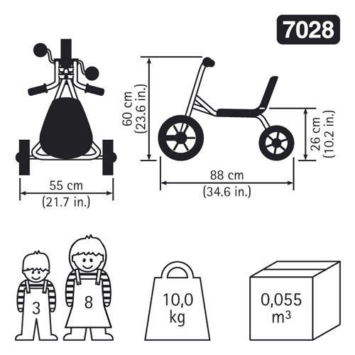 Tri-cart 2000 er førskolealderens smarteste 3-hjulede cykel. Det velformede sæde og ryglæn appellerer til børn, der gerne vil køre lidt hurtigere.
